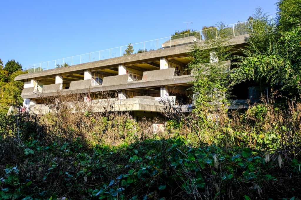 その後老人ホームへの改装計画が中断、関連会社の倒産により放置されました。