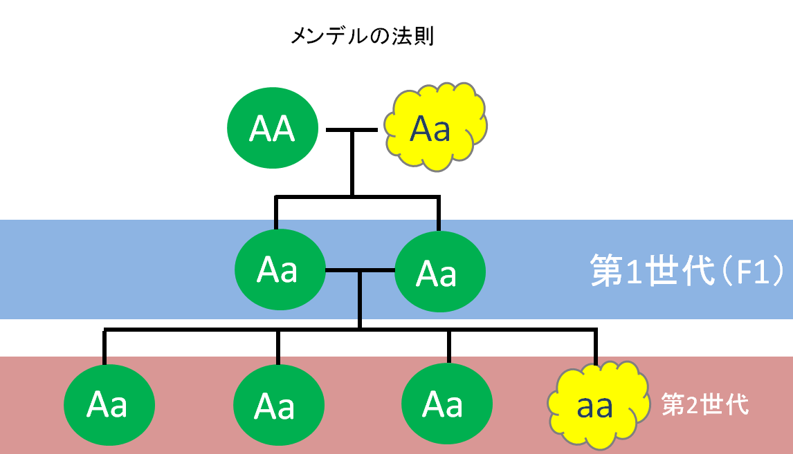 実はこの品種の掛け合わせの原理ははメンデルの法則が使われています。図で説明すると