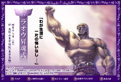 古くは『あしたのジョー』の力石徹などが有名だが、ケンシロウと死闘の末落命したラオウもそうだ。