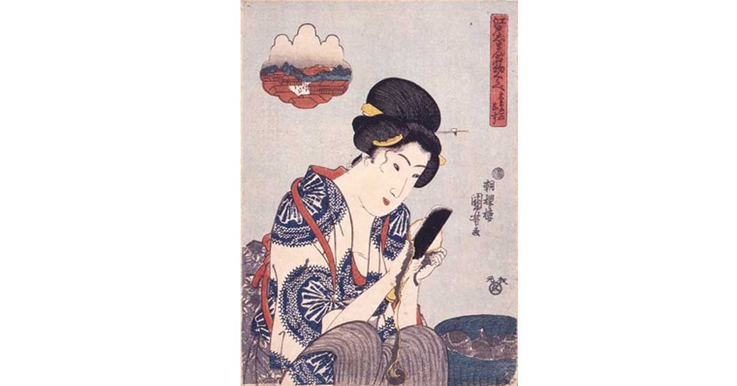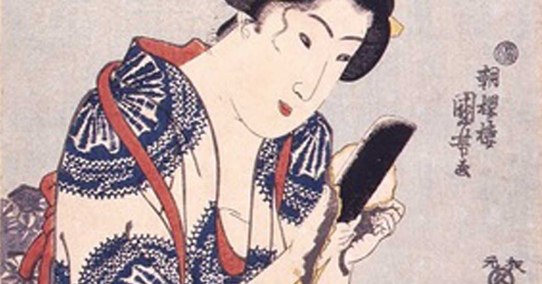 スマホを持つ女性の浮世絵