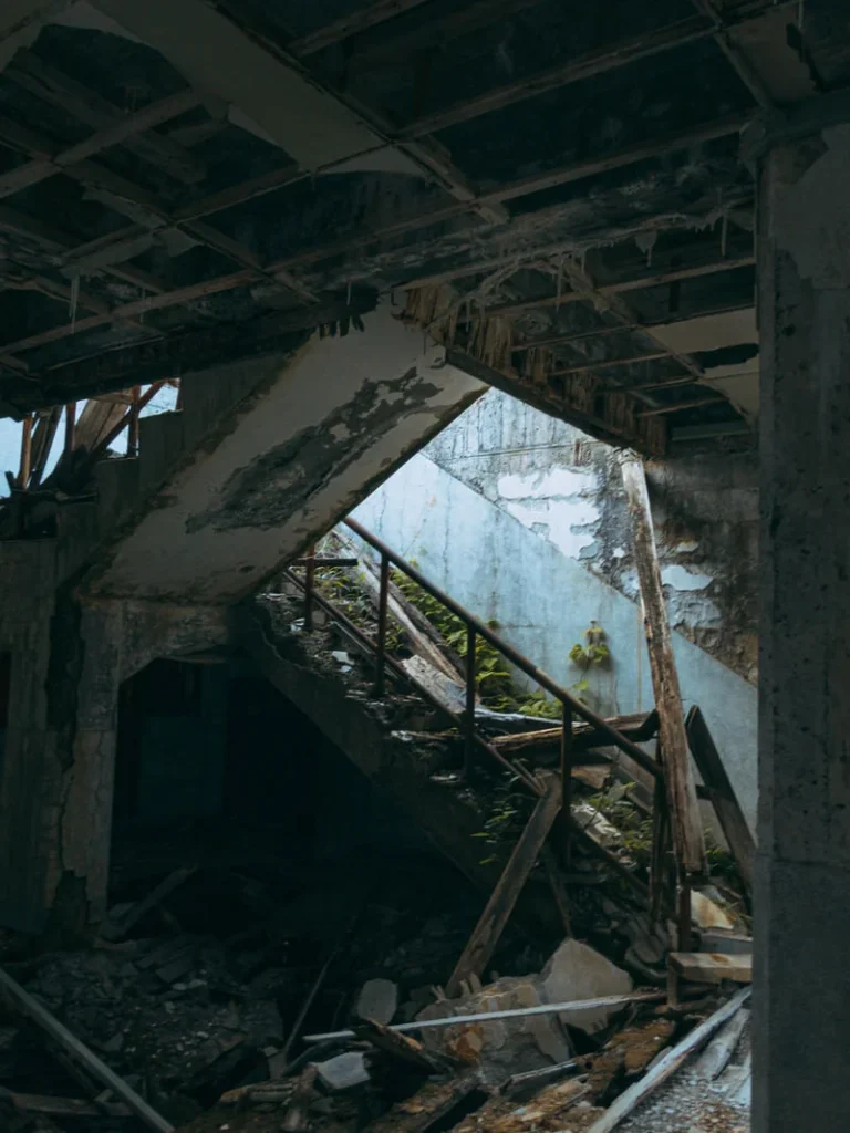 不法投棄されたゴミや、壁一面の落書きがその荒廃ぶりを物語っています。